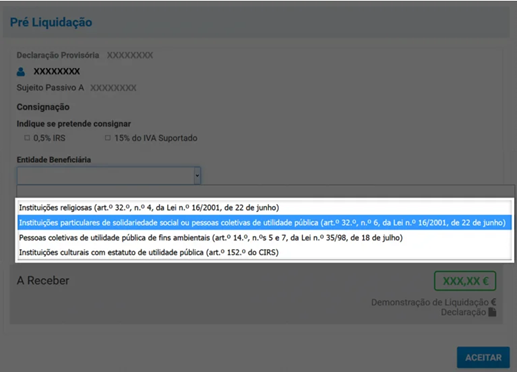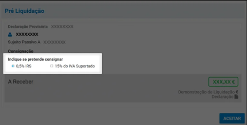 Passo 1 do IRS Automático: Na Pré-Liquidação do seu IRS, assinale a opção “Consignar 1% do IRS”